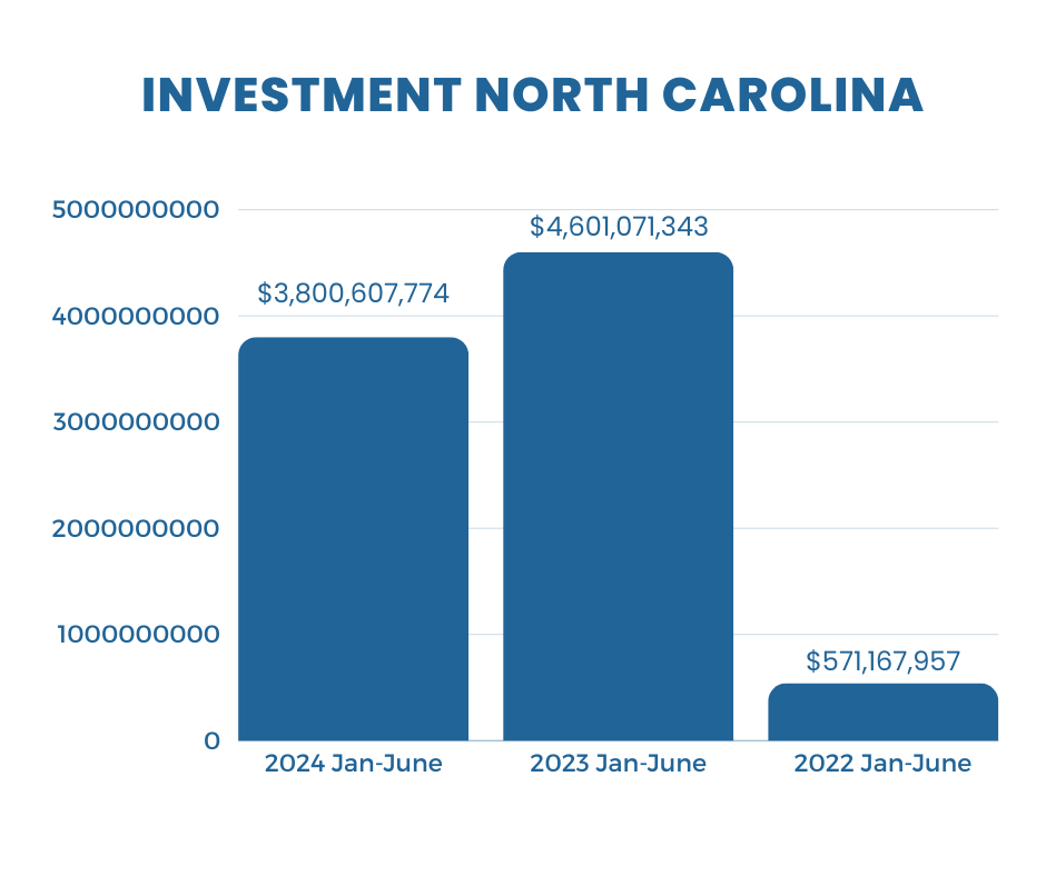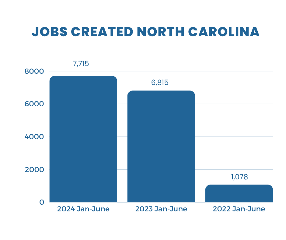 Relative to other years, North Carolina is in a good position as there are more mid-year jobs created than in 2023 and 2022, similar investment totals to 2023, and the state is on track to meet the same announcement total as 2023. According to recent data , more projects have been announced in the second half of each. If North Carolina can keep up the current pace, it’ll meet or exceed what was achieved in previous years.
