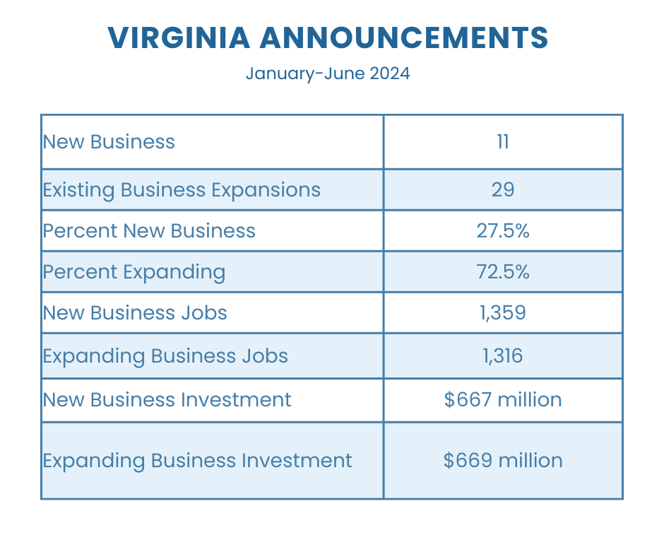 Virginia Economic Development Partnership (VEDP) – Announcement Database